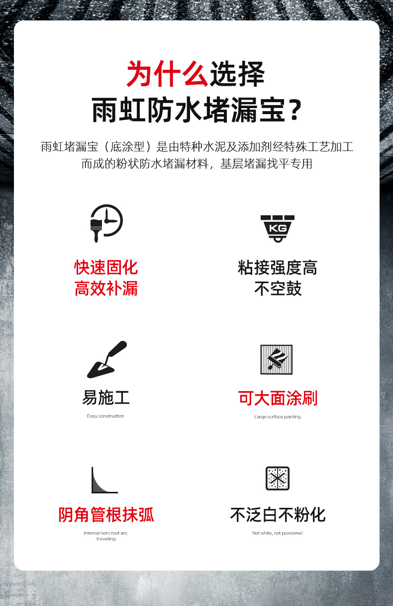 雨虹防水水不漏 速干水泥 堵漏宝快速堵漏 地漏安装 管根堵漏